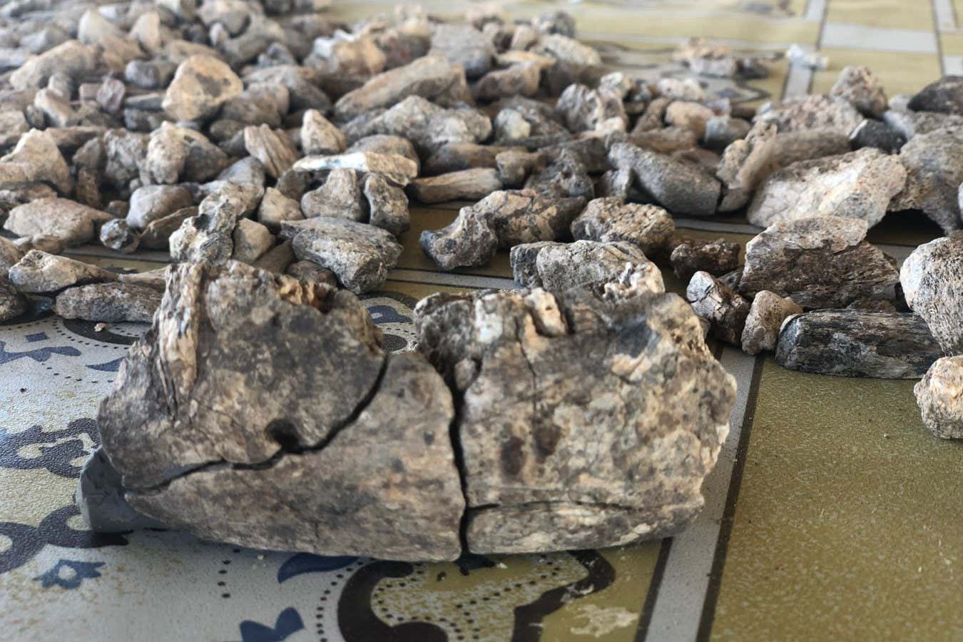 The fragments of the Paranthropus mandible after being assembled in the field